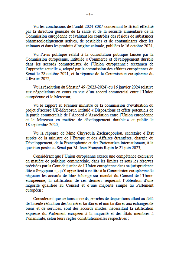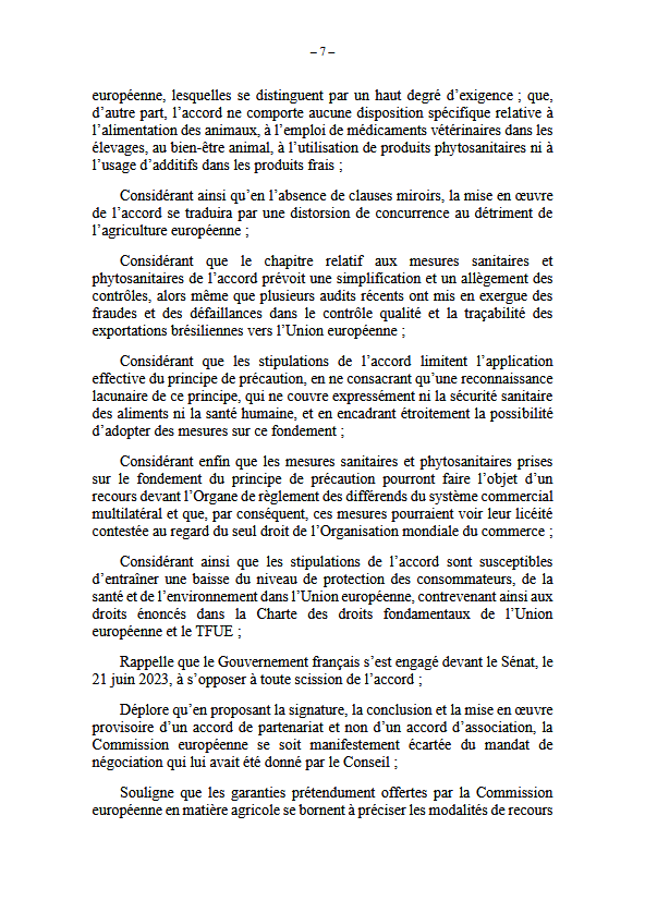 Après avoir exprimé une première fois son opposition au texte à l’occasion d’un vote en novembre 2024 et face à la volonté persistante de la Commission européenne de signer cet accord, le Sénat a adopté ce mardi 16 décembre une résolution européenne demandant au Gouvernement de saisir la Cour de Justice de l’Union européenne pour empêcher la ratification de l’accord avec le MERCOSUR.