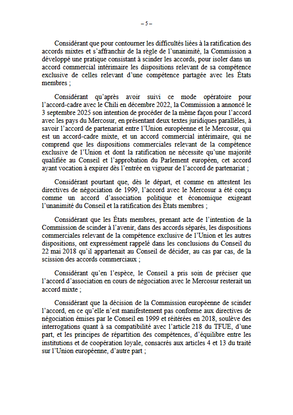 Mise à jour au 28 février : C »est finalement le Parlement européen qui a saisi la Cour de Justice de l’Union européenne en janvier 2026. La Commission européenne a toutefois annoncé le 27 février qu’elle aurait recours à une application du traité « à titre provisoire »,