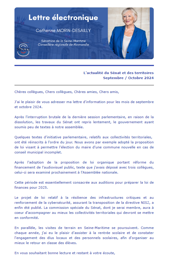 La lettre électronique d’octobre 2024 est en ligne, avec au sommaire :