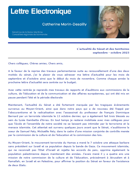 La lettre électronique d’octobre 2023 est en ligne, avec au sommaire :