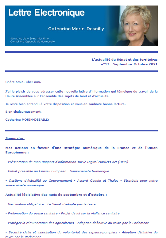La lettre électronique d’octobre 2021 est en ligne, avec au sommaire :
