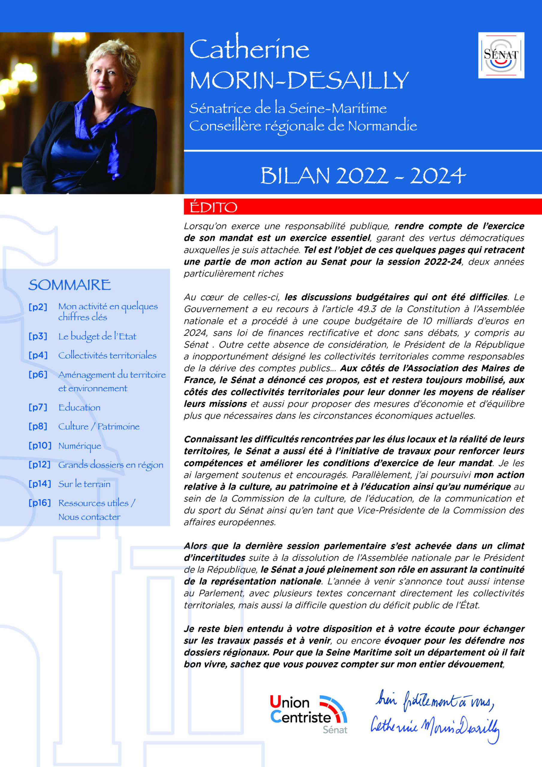 La Lettre du Sénateur #32 est en ligne. Elle revient sur les travaux au Sénat et en circonscription de Catherine Morin-Desailly entre septembre 2022 et août 2024.